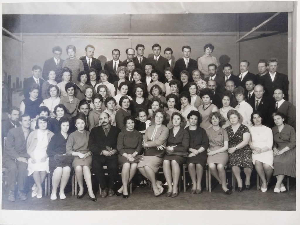 Reunion of class of 1956, Department of Mathematics and Mechanics, Leningrad University. 1966. Dr. Tseytin stands in the back row, #5 from left. Встреча выпускников матмеха ЛГУ 1956 года. Год 1966. Г.С. Цейтин стоит в верхнем ряду 5-й слева. В том же ряду профессор А.М. Вершик и академик И.А. Ибрагимов.