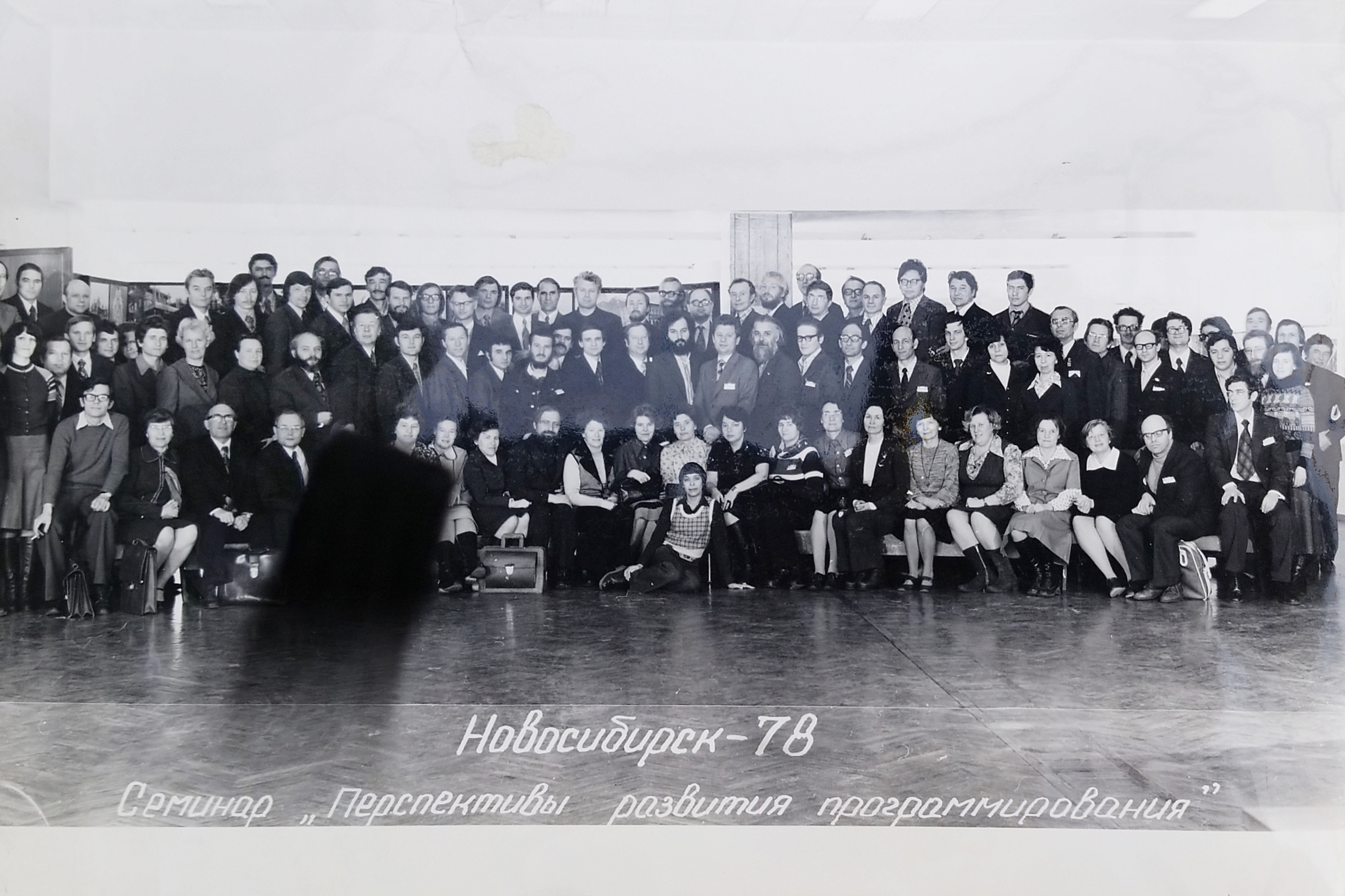 At the Seminar for Future Trends of Computer Programming. Novosibirsk, Russia, 1978. Dr. Tseytin is the first from the right in the front row. Семинар о перспективах развития программирования в Новосибирске. 1978 год. Г.С. Цейтин – первый справа в первом ряду.